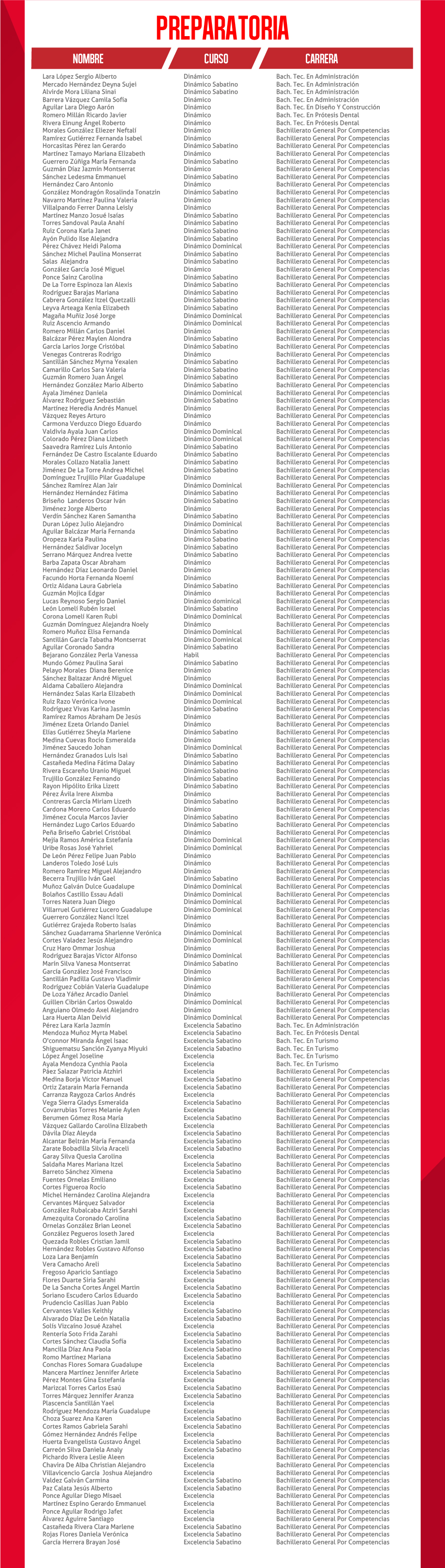 Admitidos calendario Licenciatura 2017A y Preparatoria 2016B